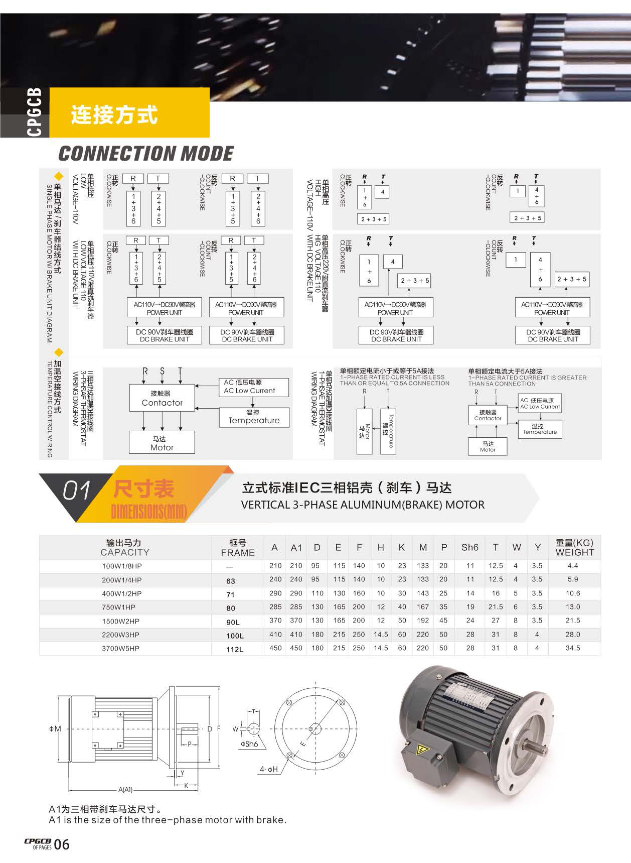 立式標(biāo)準(zhǔn)IEC三相鋁殼(剎車)馬達(dá)