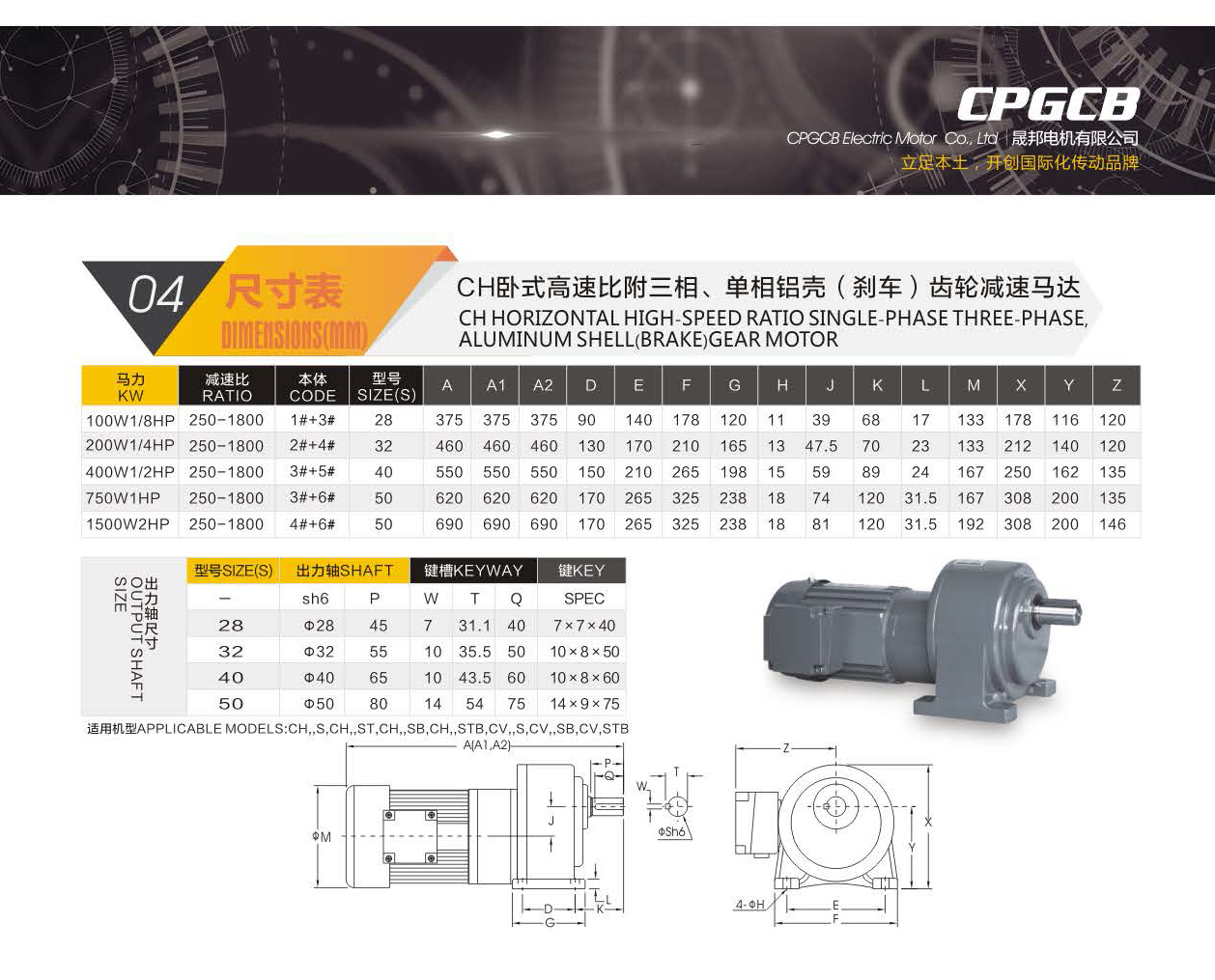 CH臥式高速比附三相、單相鋁殼(剎車)齒輪減速馬達